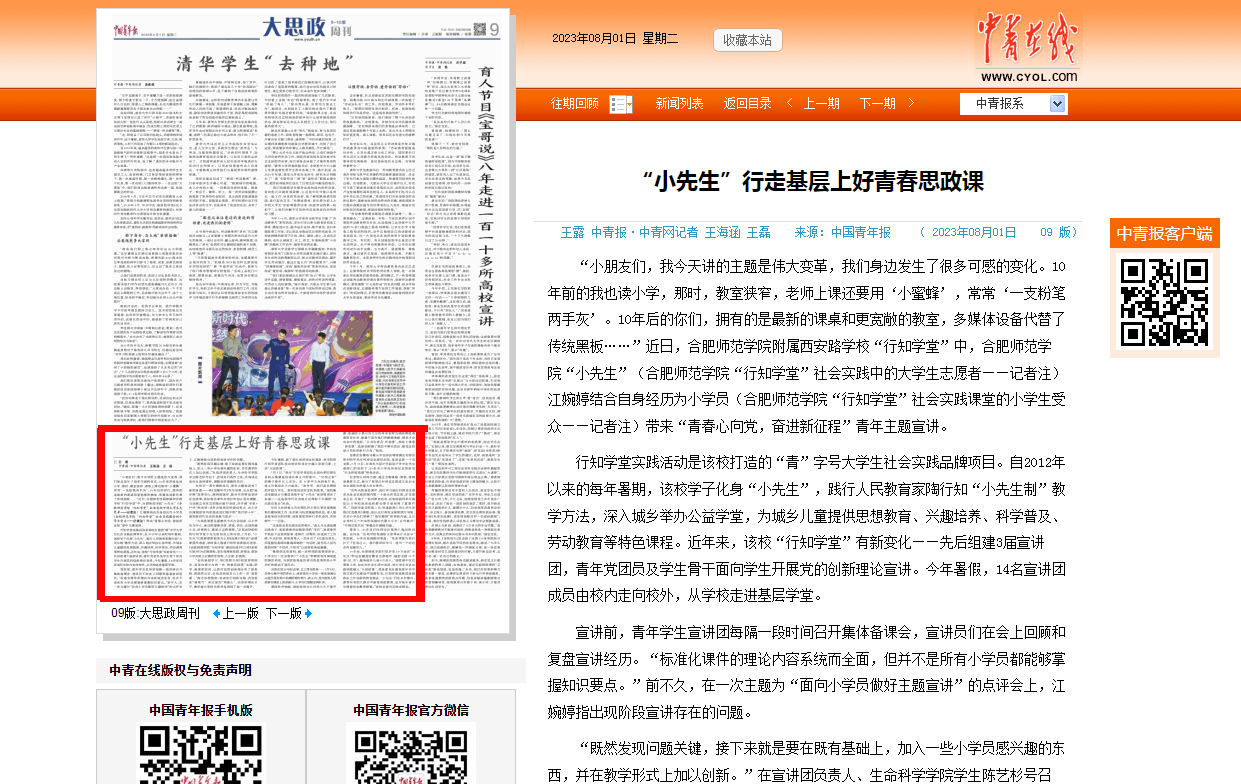 此次行知学堂是学院和首次联合桥头集镇中学开展行知学堂,小先生们与38名小学员在为期28天的实践活动中朝夕相处,共同收获了欢乐和成长,并赢得当地家长和学员们的一致好评,中国青年报对此进行了报道。(澳门网投十大信誉平台:周玉)