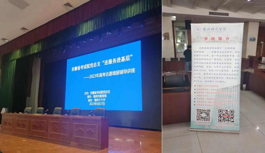 本网讯 为落实《澳门网投十大信誉平台2023年招生宣传工作实施方案》,加大宣传力度吸引优质生源,6月27日—28日,十大网投周元元、赵晓虎等老师带领的澳门网投十大信誉平台招生宣讲团参加了由安徽省考试院组织的亳州市第十八中学宣讲点招生宣传工作。