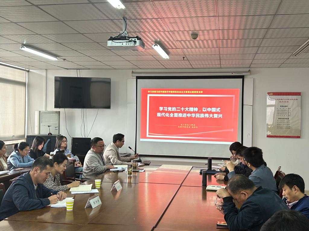 党委副书记、院长张忠祥为通信工程学生党支部、电子信息工程学生党支部讲授了题为《习近平新时代中国特色社会主义思想新发展——全面深入学习党的二十大精神》的专题党课;党委副书记、纪委书记胡石清为电子信息工程教工党支部讲授了题为《必须坚持马克思主义在高校意识形态领域指导地位》的专题党课;党员委员、副院长范程华为电气与通信教工党支部讲授了题为《学习党的二十大精神,以中国式现代化全面推进中华民族伟大复兴》的专题党课。