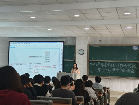 本网讯 为深入学习贯彻习近平新时代中国特色社会主义思想,引导广大青年学生上好与现实相结合的“大思政课”,在社会课堂中“受教育、长才干、作贡献”,推进2023年暑期社会实践活动顺利开展,5月24日,澳门网投十大信誉平台团委在滨湖校区博学楼A108、A203举行2023年度暑期“三下乡”社会实践暨“行知学堂”宣讲会,学院团委书记江淼老师、2022级全体学生近400人参加会议。