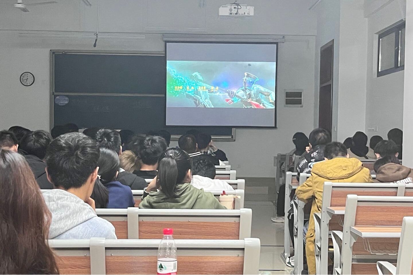 现场同学们认真观影,情绪随电影情节而变,在看到战争取得胜利时拍手叫好,在看到战士牺牲时忍不住流泪,学习了解那段峥嵘岁月发生的故事,用心感受电影传达的红色精神。