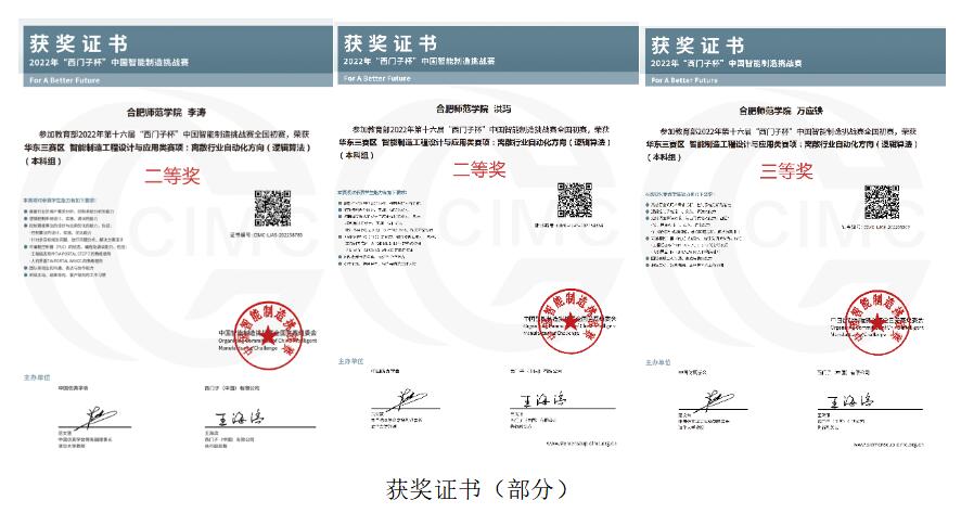 本网讯 近日,第16届“西门子杯”中国智能制造挑战赛离散行业自动化方向(逻辑算法)安徽省赛区暨华东三分赛区(线下)比赛顺利举办,我校首次作为赛点单位组织学生参加本次大赛。自今年大赛全面启动以来,本赛项共吸引了全国302所高校(本科组)的1234支队伍参赛。其中,我校由电子信息与电气工程学院李瑞金老师指导的3支学生参赛队伍,分别获得了全国初赛华东赛区二等奖2项和三等奖1项的好成绩。
