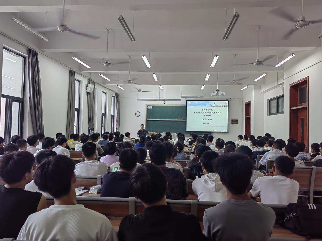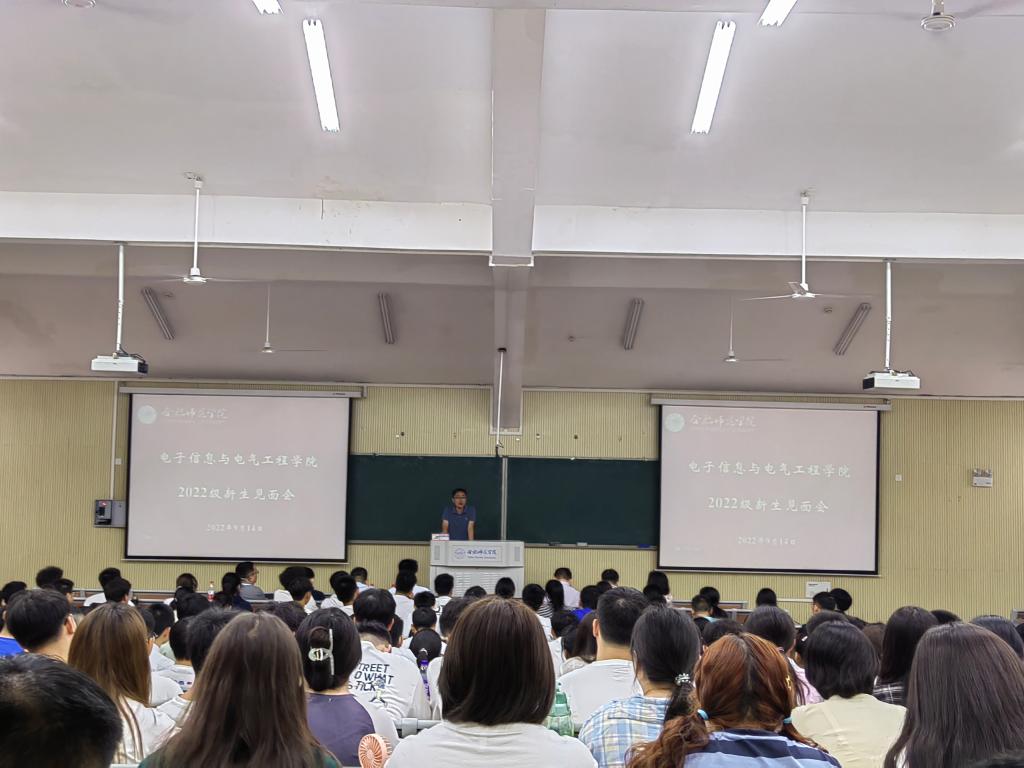 本网讯 为做好2022级新生入学教育,引导新生尽快适应大学学习生活,促进优良校风、学风建设,9月14日—15日,电子信息与电气工程学院在滨湖校区铭传楼A101开展了新生见面会暨新生入学教育。院长张忠祥、党委副书记胡石清、副院长范程华,各专业负责人、辅导员及2022级全体本科生共380余人参加。新生见面会由学院2022级新生辅导员周玉主持。