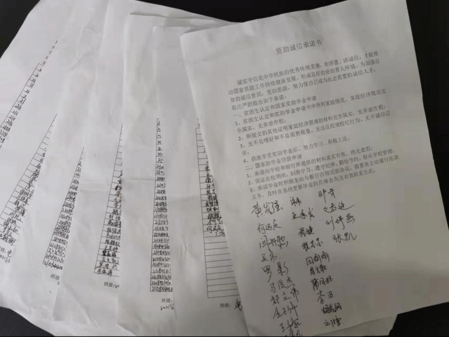 在整个五月期间,电院在本科阶段多年级广泛召开资助育人主题班会,向同学们讲解助学贷款、资助绿色通道、国家助学金等国家资助政策,让同学们充分了解资助育人的政策温度,选聘4位学生担任资助宣传大使,在校园里、去家乡中广泛宣传国家资助育人理念,身体践行感恩服务。通过开展“树立诚信意识,增强责任担当”诚信签名活动和签署诚信考试承诺书活动,使资助育人质量提升体系不断完善,“立德立行,诚实守信”的价值引领真正入心入行。