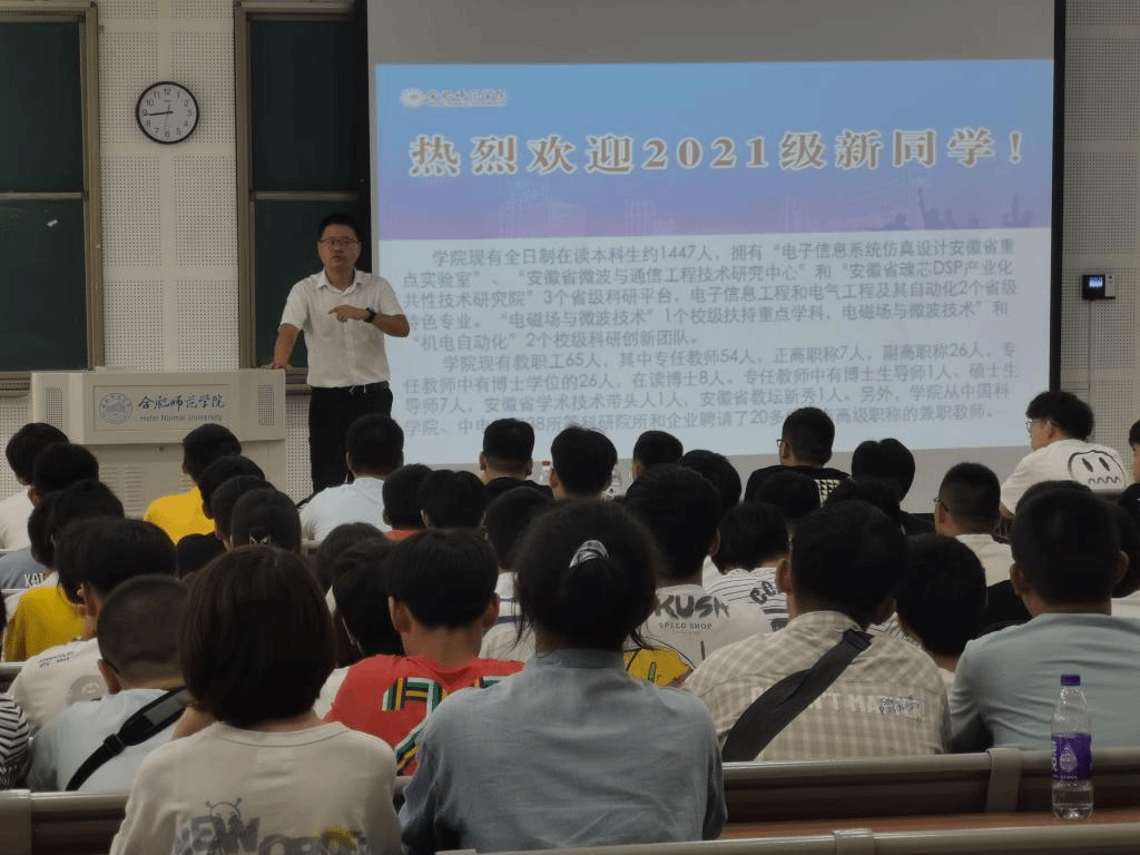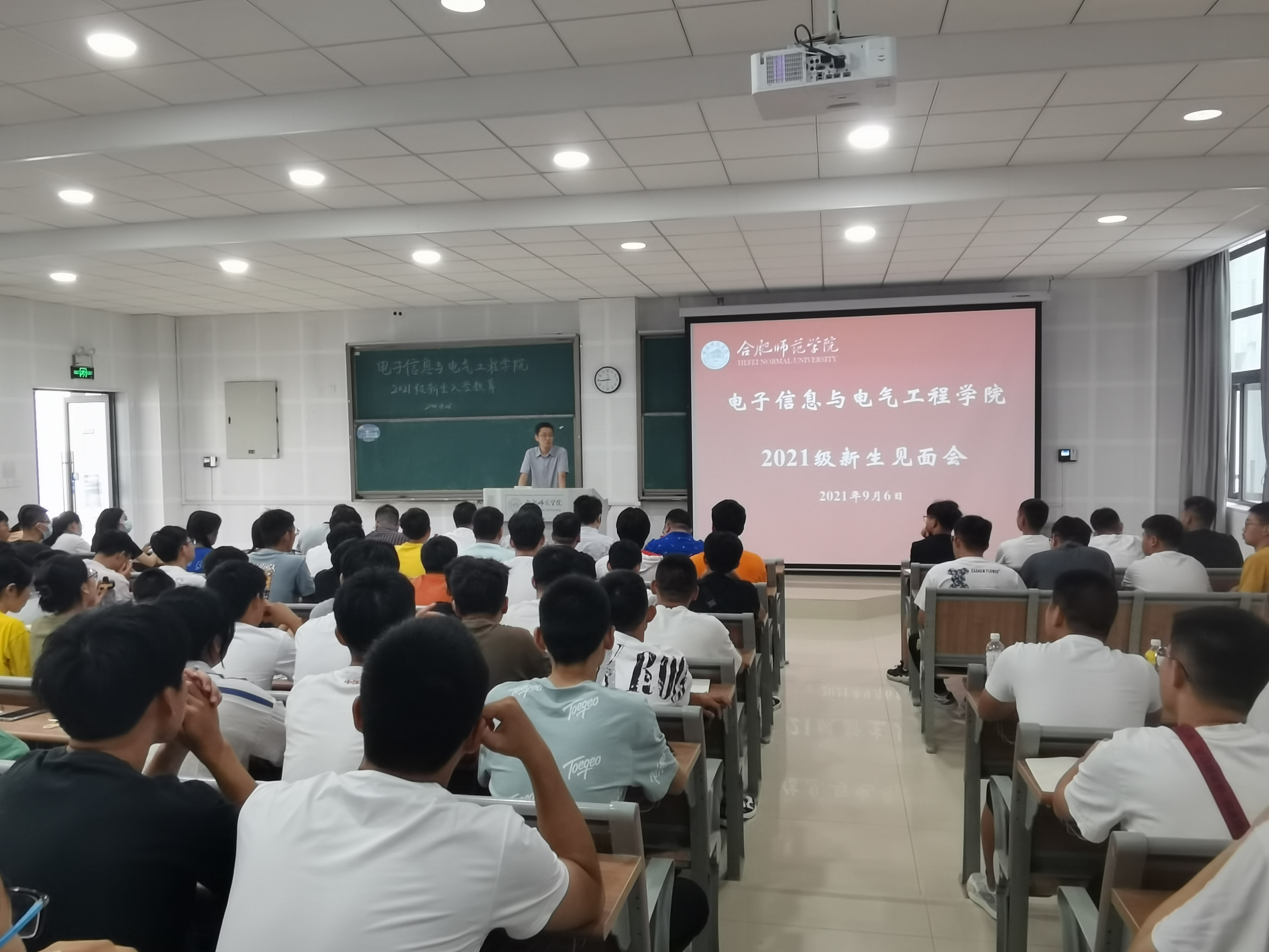 本网讯 为做好2021 级新生入学教育,引导新生尽快适应大学学习生活,促进优良校风、学风建设,电子信息与电气工程学院于9月6日、7日在滨湖校区博学楼D101开展了新生见面会暨新生入学教育。院长张忠祥、党委副书记胡石清、副院长范程华,各专业负责人、教学秘书、辅导员及2021级全体本科生共280余人参加。新生见面会由学院2012级新生辅导员江淼老师主持。