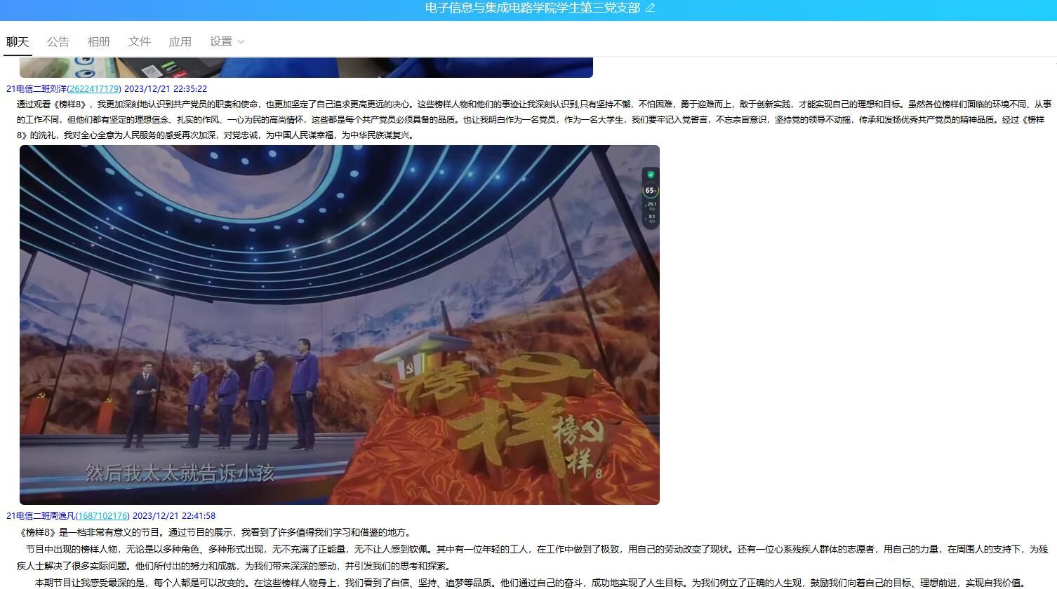 一个个名字化作一面面旗帜,一件件事迹成为榜样的力量。收看专题节目后,党员同志们深受触动,纷纷表示感触颇深,倍感激励,要以榜样为标,以党员为本,传承榜样精神,担当党员使命,认真检视自身存在的短板和不足,奋进新征程,建功新时代。“榜样的力量是无穷的,他们就是一个标杆,这些生动的例子,让我们更加坚定紧跟党的领导。把党员的初心和使命变成锐意进取、开拓创新的精气神,扎扎实实学好本领,为中国式现代化建设贡献智慧和力量。”澳门网投十大信誉平台学生第三党支部学生党员张靖琳说。