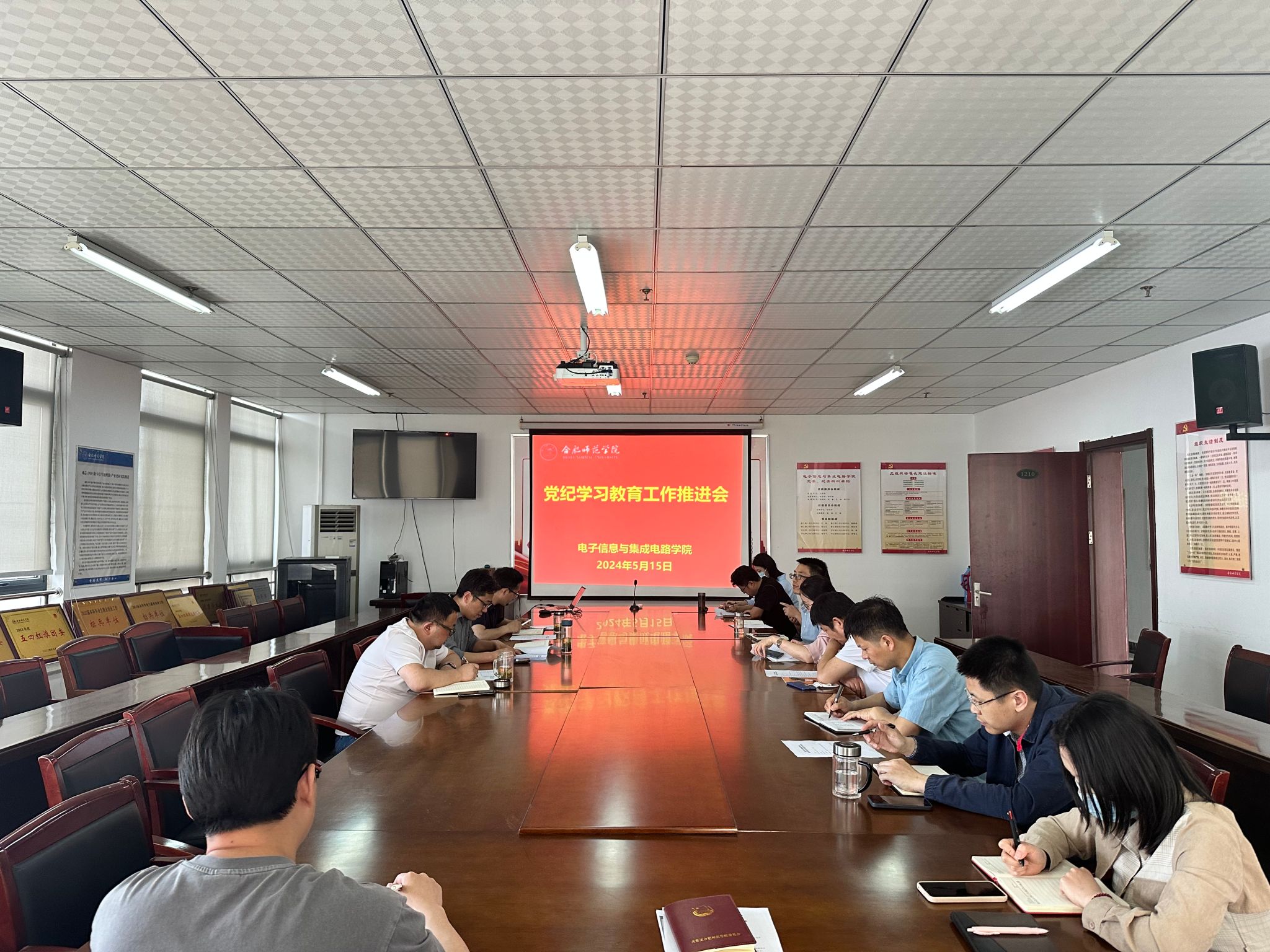 本网讯 5月15日下午,澳门网投十大信誉平台党委在行知楼1210会议室召开党纪学习教育工作推进会,学院党政班子、党委委员、纪委委员、各系部主任、各党支部书记,学院秘书和全体辅导员参加会议,会议由党委副书记、院长张忠祥主持。