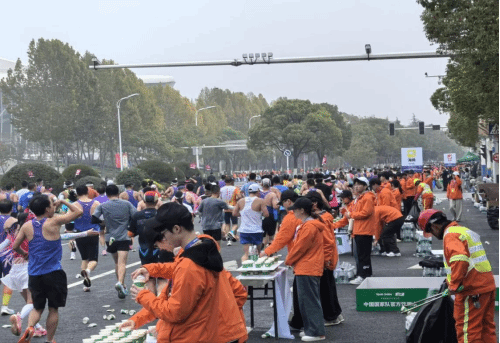 比赛当日凌晨,当整座城市仍沉浸在沉睡中,志愿者们已整装集结完毕。在凛冽的晨风中,有序乘车奔赴赛场,抵达岗位后迅速投入工作,清点摆放饮用水、能量饮料,备好降温海绵与新鲜水果,为跑者筑牢能量后盾。