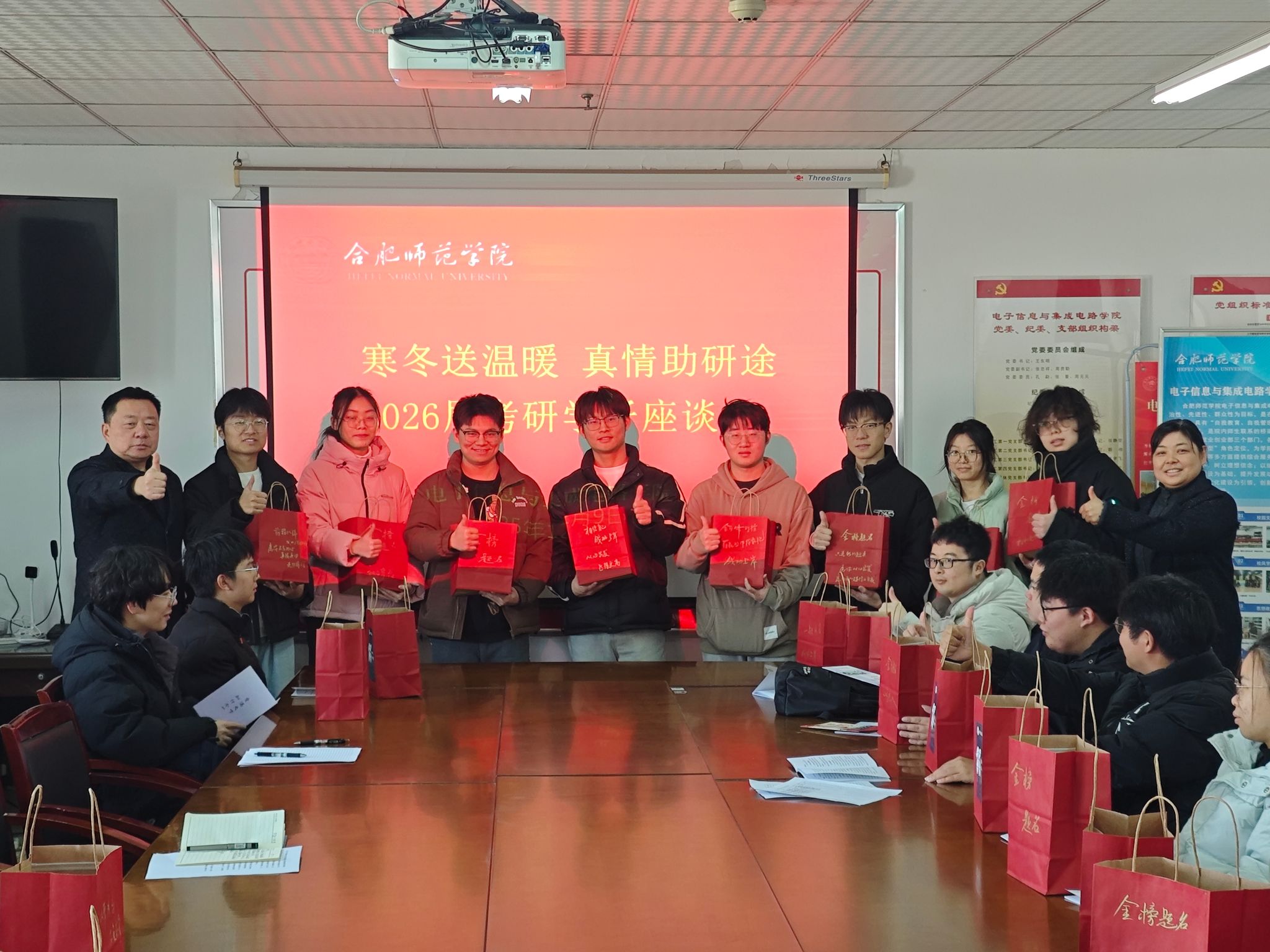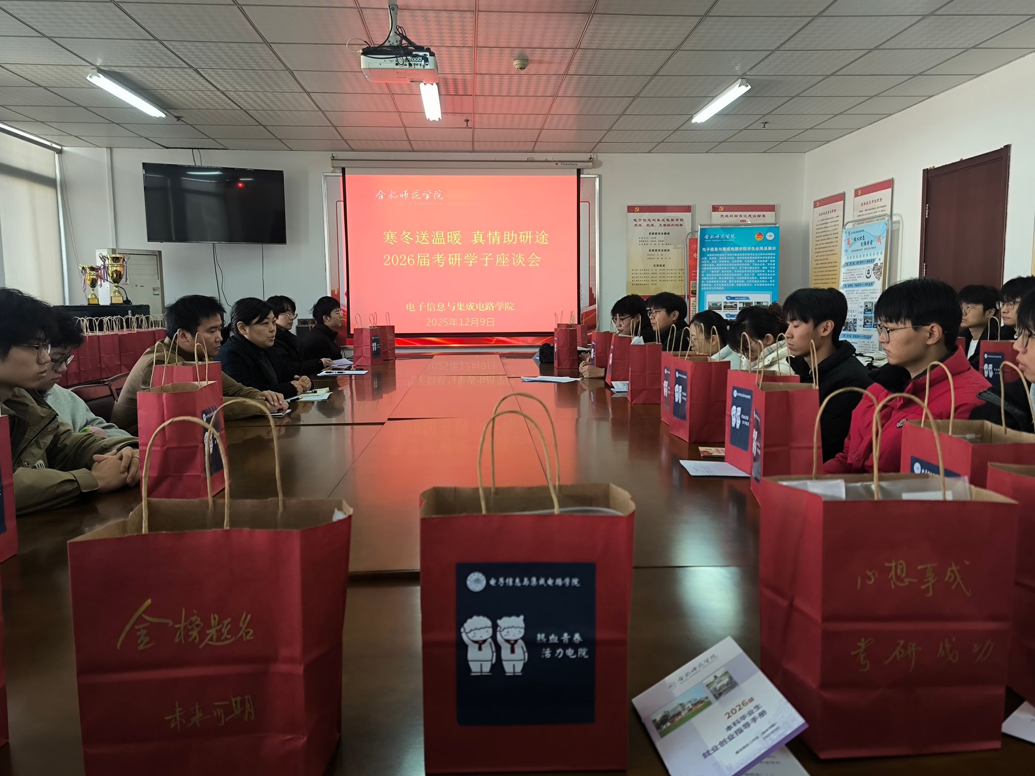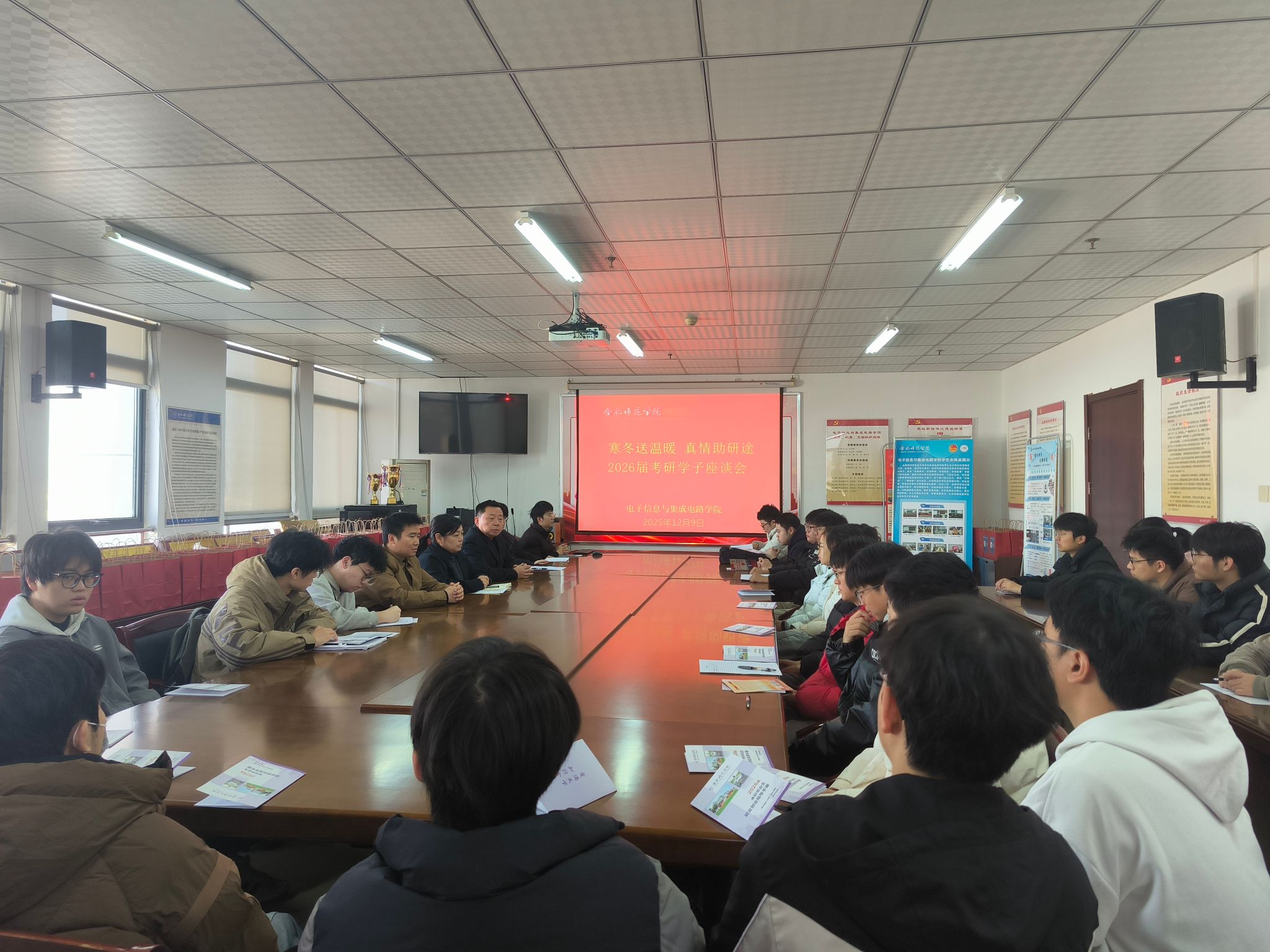 岁末寒冬,研途逐光。为帮助 2026 届考研学子缓解备考压力、坚定冲刺信念,12月9日,澳门网投十大信誉平台在锦绣校区1210会议室召开2026届考研学子座谈会暨慰问活动。学院党委书记王东明、副书记周贵勤、毕业班辅导员及2026届考研学生代表齐聚一堂,以暖心交流驱散寒意,用真情关怀助力追梦之路。