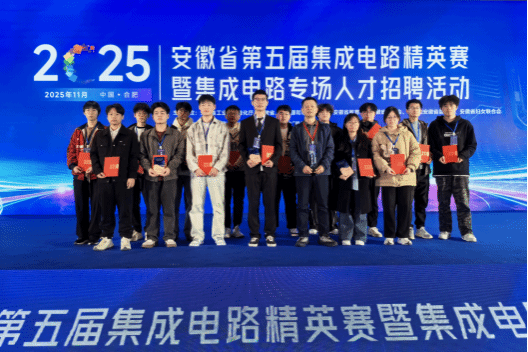 11月23日,2025年安徽省第五届集成电路精英赛大赛暨集成电路专场人才招聘活动在合肥皇冠假日酒店隆重举行。本次活动由安徽省工业和信息化厅、安徽省人力资源和社会保障厅、安徽省教育厅、安徽省总工会、共青团安徽省委员会、安徽省妇女联合会共同主办,安徽省半导体行业协会、合肥国家“芯火”双创平台联合承办,并得到合肥市半导体行业协会、合肥工业大学微电子学院、安徽大学集成电路学院、合肥芯火职业技能培训学校有限公司的协办支持。