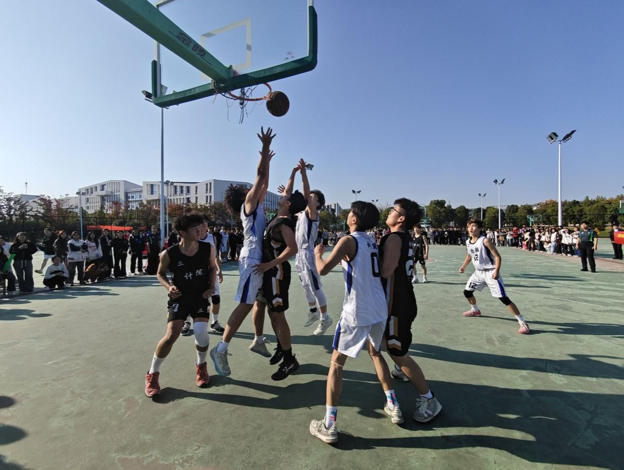 赛场拼搏,洒热血汗水;奋勇争先,展电院风采。决赛场上,篮球队员们火力全开、默契配合,灵活地运球,迅猛地跳投,精彩的“抢断”,有力的“盖帽”,一轮轮投篮动作帅气利落,一次次防守得分潇洒自如,在这场火与篮的碰撞中,演绎属于他们的青春荣耀时刻。整个篮球场上气氛紧张又充满激情,引得现场观众呐喊不断,令人热血沸腾。